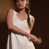 This sleeveless white cotton kurta set is perfect for everyday white wear. Crafted in 100% pure cotton, it features embroidery and delicate lace detailing along the edges. The straight silhouette and matching pants make it effortless, elegant, and ideal for warm days.